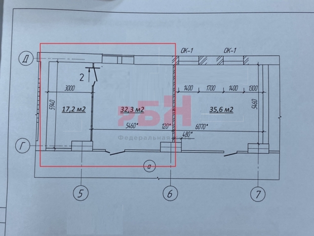 - разделен перегородкой на кабинеты 17,2м2 и 32,3м2